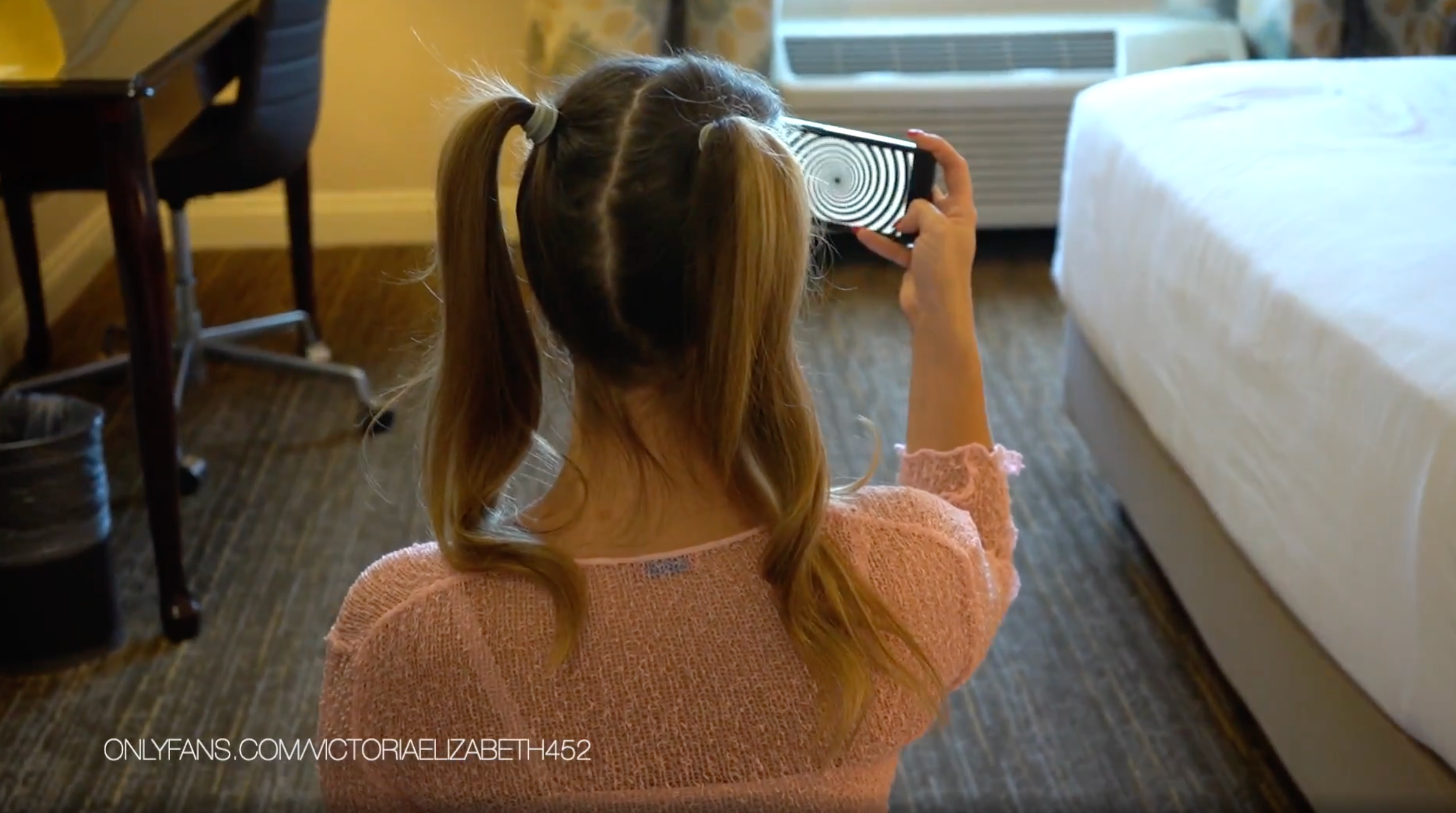Victoria is a yoga instructor at a fancy hotel. She comes to the clients room to do a yoga practice with him. She starts with the basics, she realizes he’s not doing the yoga and just watching her. She calls him out, saying its making her uncomfortable. He then hands her spirals on a phone, she’s confused at first but realizes she cant take her eyes off of it. Her eyes get heavy and she mumbles mantras about being “masters mindless slave.”