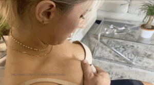 Fourth Scene: Victoria tries on different bras and tops on video.